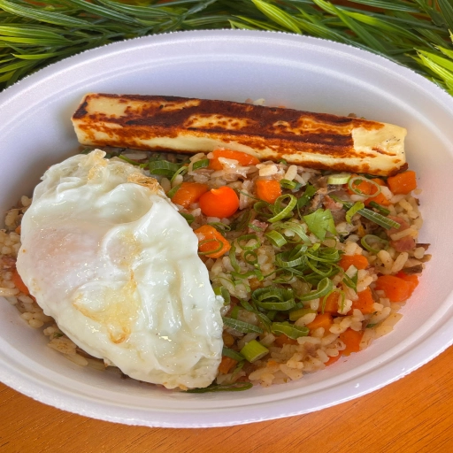 Arroz de Fraldinha com Ovo Frito e Queijo Coalho - Servem 1 pessoa